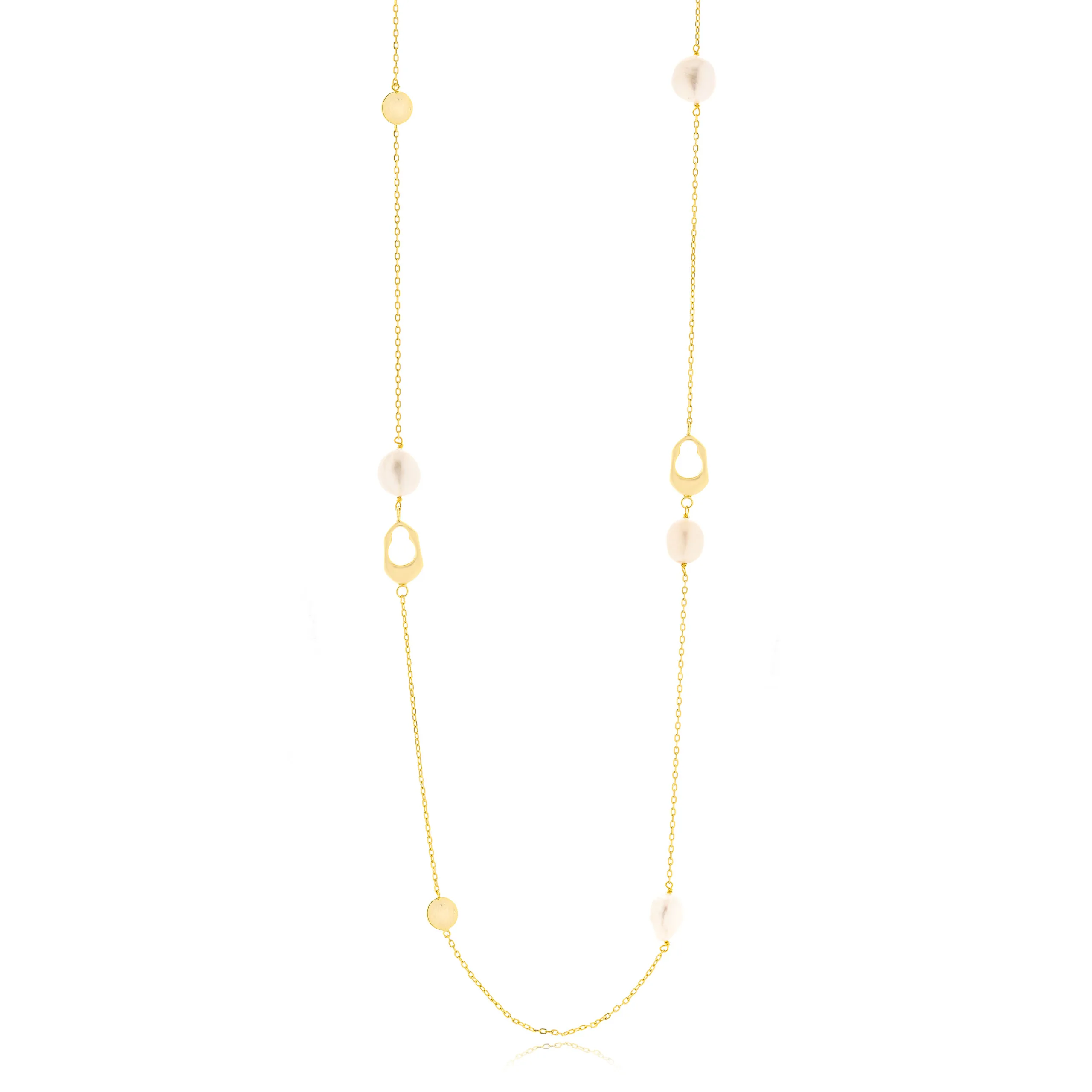 Ασημένιο επιχρυσωμένο μακρύ κολιέ της εταιρίας JOOLS διακοσμημένο με πέτρες μαργαριτάρια. Ιδανικό για να αναδείξει το καθημερινό σας outfit