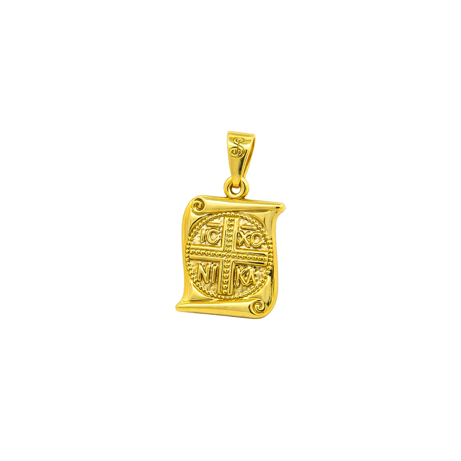 Ένα ιδιαίτερο θρησκευτικό φυλαχτό σε σχήμα παπύρου, κατασκευασμένο από χρυσό 9 καρατίων. Το κόσμημα διαθέτει διπλή όψη, συνδυάζοντας την πνευματικότητα με έναν καλλιτεχνικό σχεδιασμό.