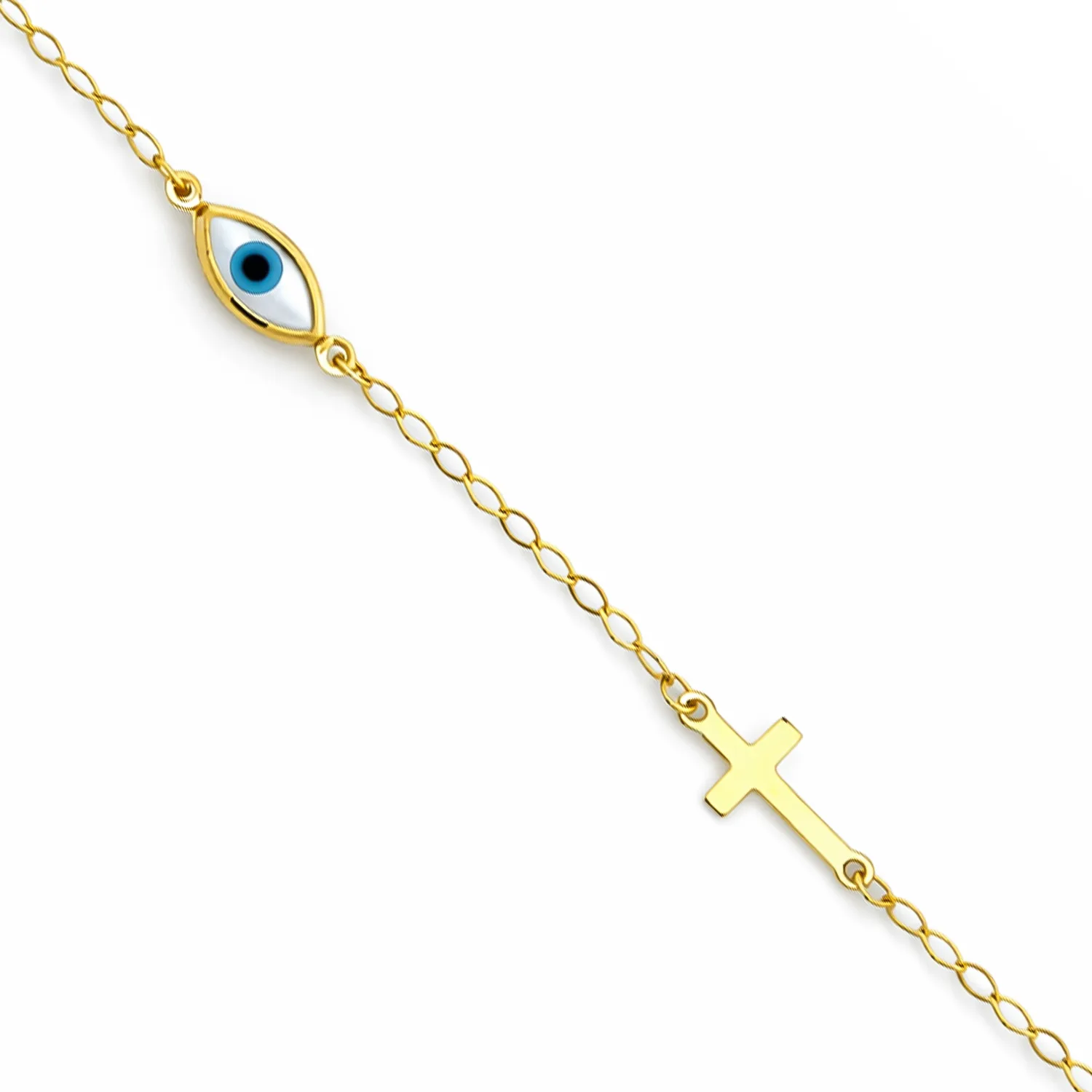 Χρυσό Βραχιόλι με Ματάκι και Σταυρό