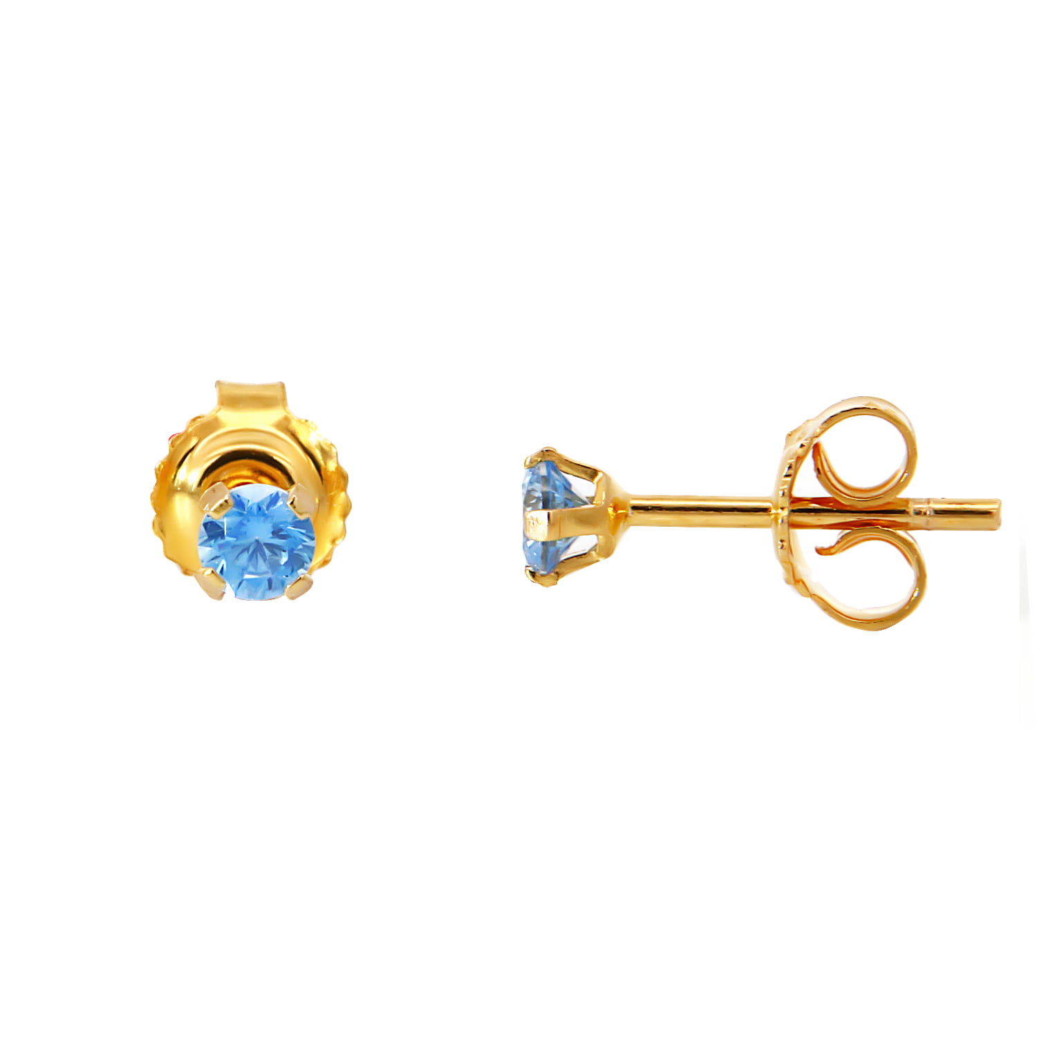 Χρυσά καρφωτά σκουλαρίκια με γαλάζια πέτρα