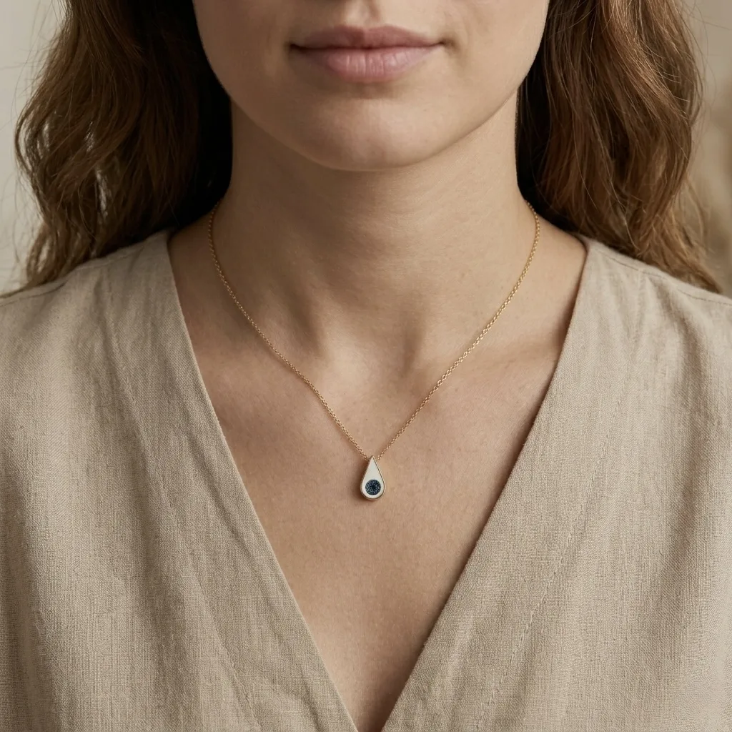 Γυναικείο κολιέ με μάτι από σμάλτο και μπλε ζιργκόν. Μια διαχρονική επιλογή για κάθε ηλικία και περίσταση.