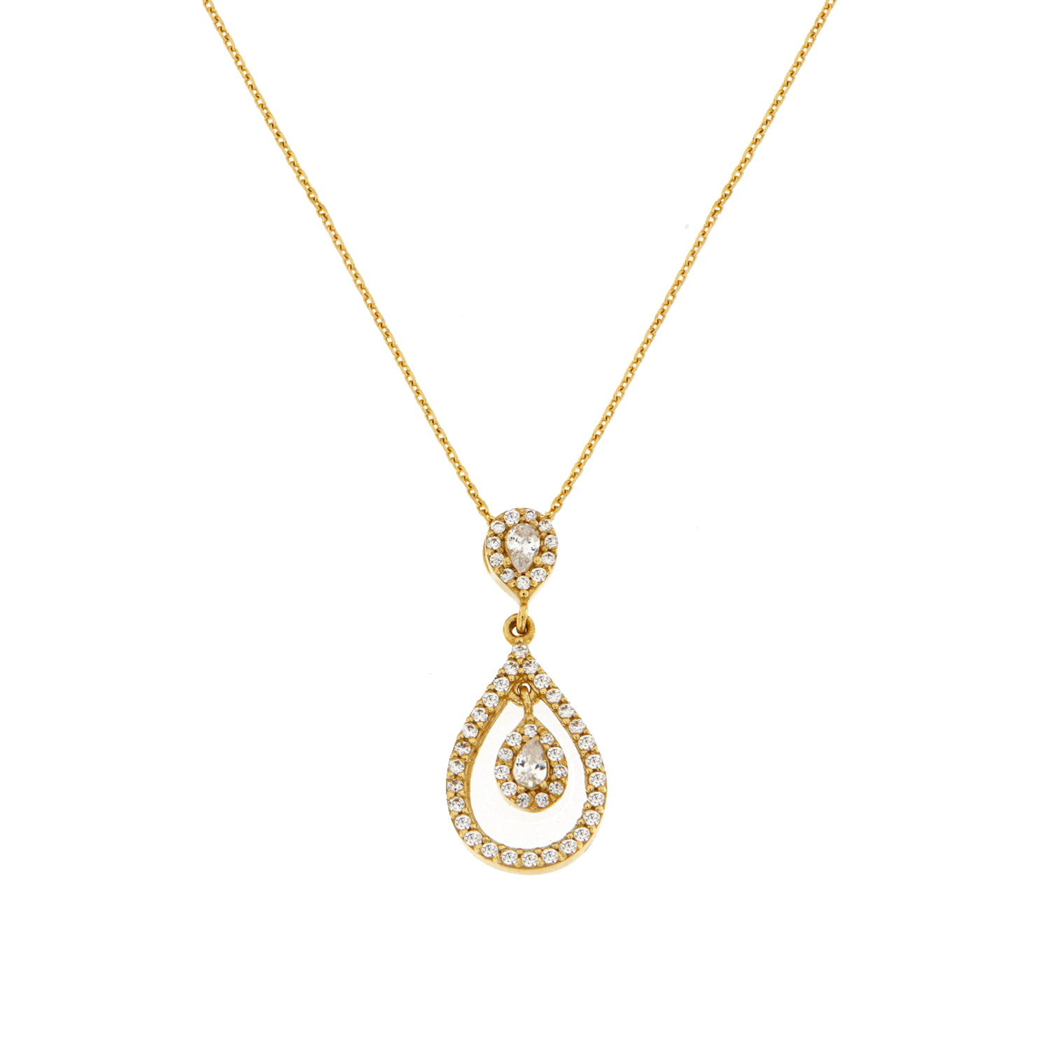 Γυναικείο κολιέ διπλό δάκρυ και ζιργκόν. Αποτελεί ένα υπέροχο κόσμημα για κάθε περίσταση και κάθε ηλικία.