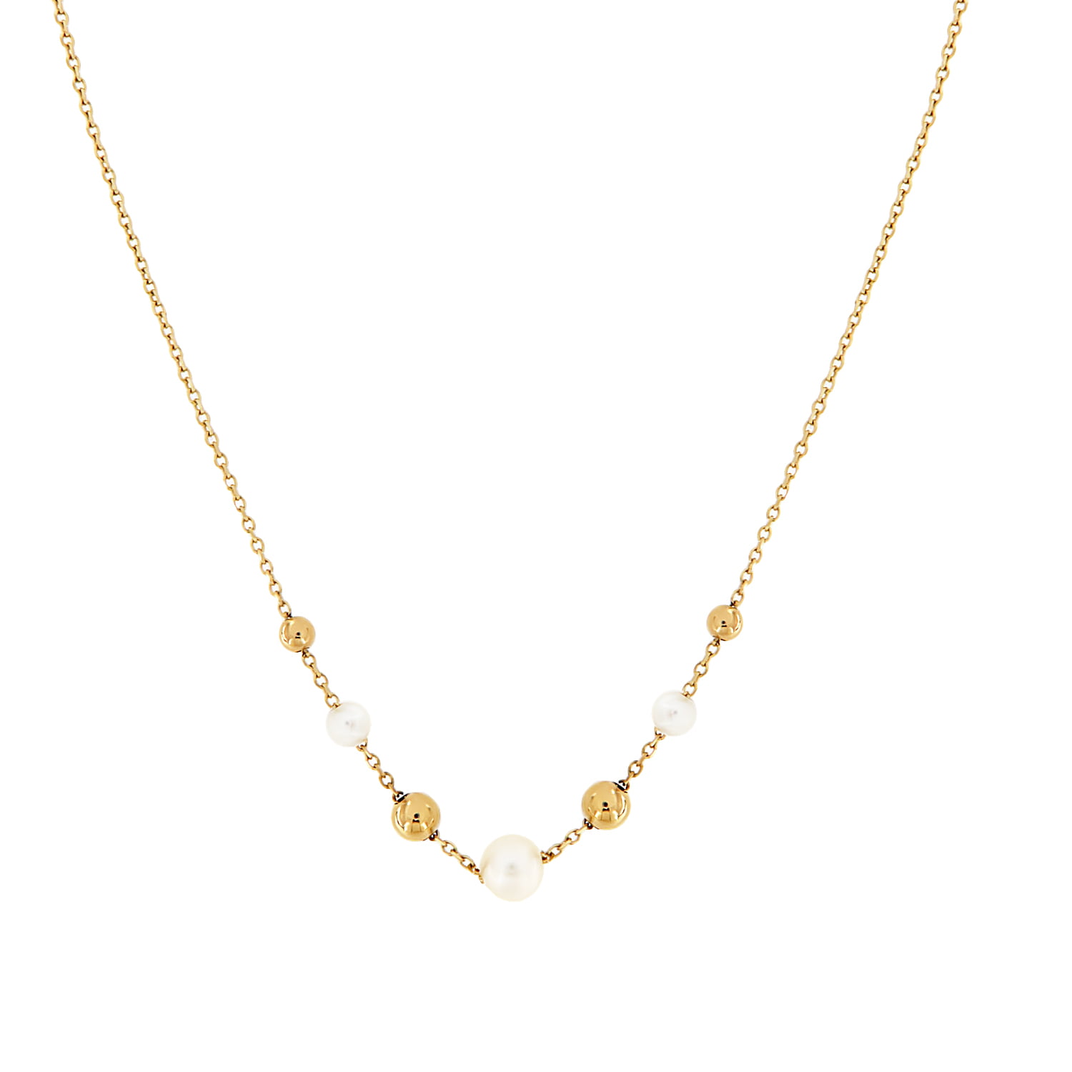 Γυναικείο κολιέ με μαργαριτάρια και χρυσές μπίλιες . Αποτελεί ένα κόσμημα που ταιριάζει τόσο σε καθημερινές όσο και σε επίσημες εμφανίσεις.