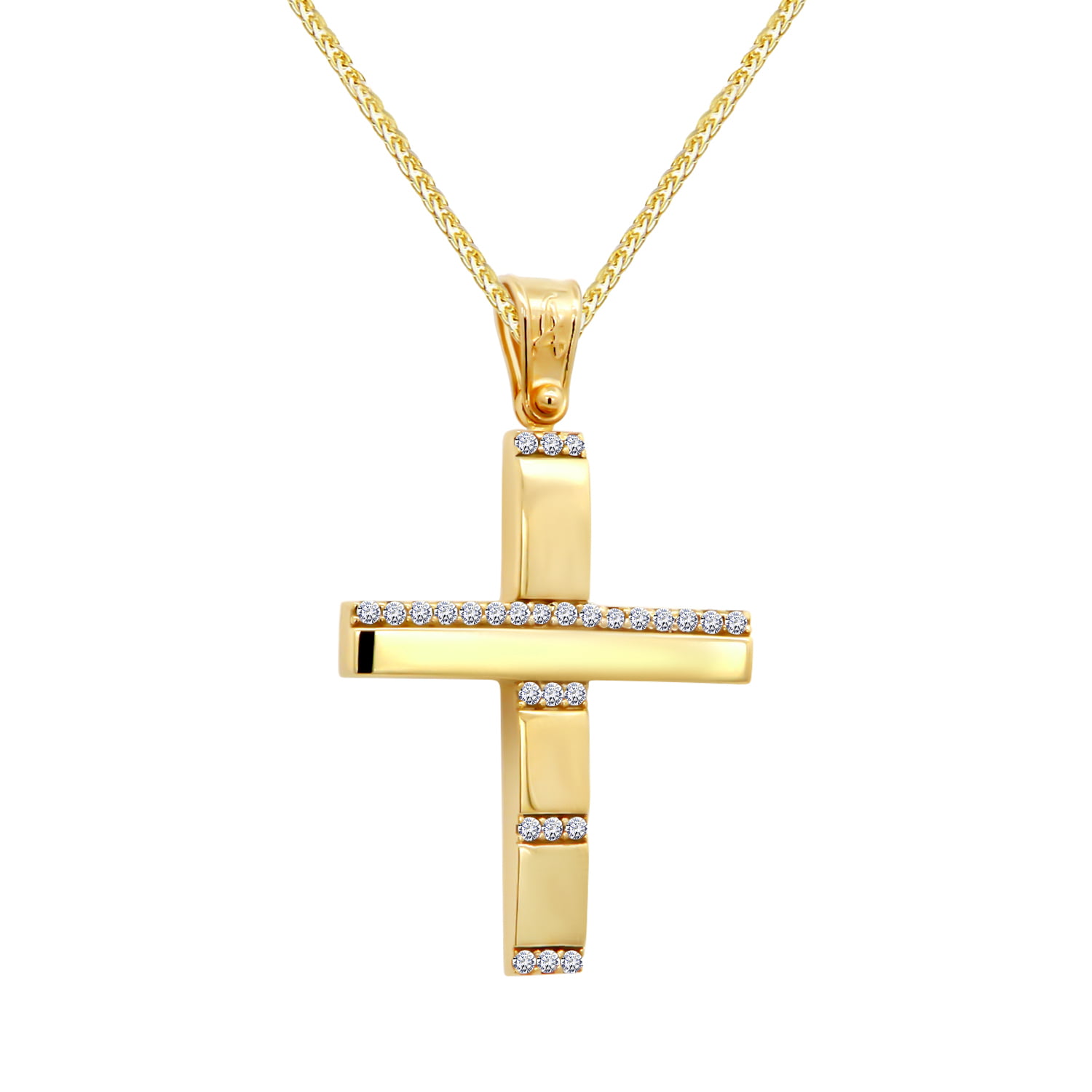 Χρυσός γυναικείος σταυρός από χρυσό 14 καρατίων με σειρές ζιργκόν.