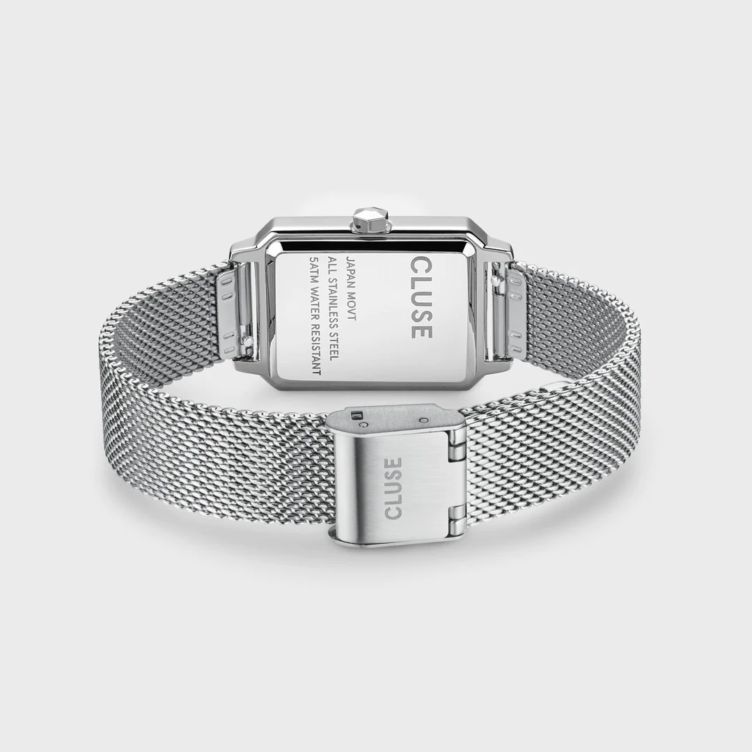 Γυναικείο ρολόι Cluse της σειράς Fluette κατασκευασμένο από ανοξείδωτο ατσάλι με εντυπωσιακό ασημί καντράν στο εσωτερικό