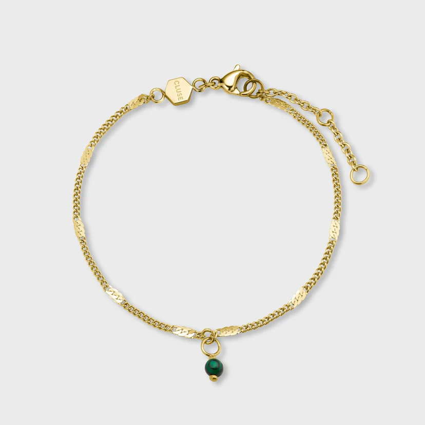 Cluse Gift Box La Tetragone Mesh And Malachite Bracelet Gold Color CG10317