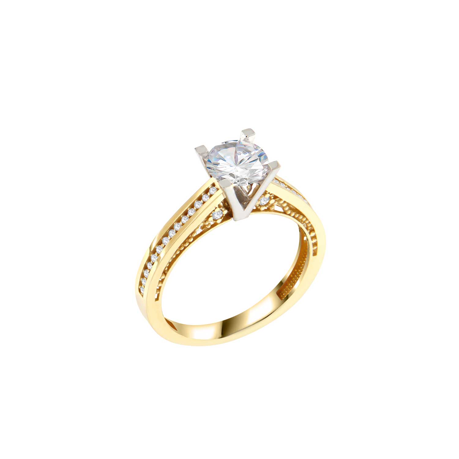 Σας παρουσιάζουμε ένα γυναικείο μονόπετρο δαχτυλίδι 14 καρατίων με ιδιαίτερο σχεδιασμό στη γάμπα του δαχτυλιδιού και πέτρες ζιργκόν. Αυτό το κομψό κόσμημα είναι τέλειο για ειδικές περιστάσεις. Με την εντυπωσιακή σχεδίασή του και την άψογη προσοχή στη λεπτομέρεια, αυτό το δαχτυλίδι είναι ένα απαραίτητο αξεσουάρ που θα λατρέψει κάθε γυναίκα.
