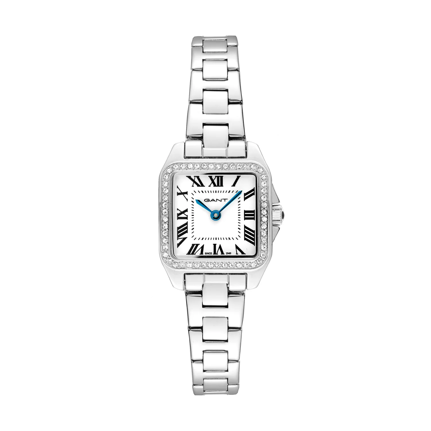 Το γυναικείο ρολόι GANT G193101 εντυπωσιάζει με τον απόλυτο συνδυασμό κλασικής κομψότητας και σύγχρονης λάμψης. Η τετράγωνη κάσα από ανοξείδωτο ατσάλι, πλαισιωμένη από λαμπερούς κρυστάλλους, θυμίζει εμβληματικά σχέδια υψηλής ωρολογοποιίας και προσφέρει μια εκλεπτυσμένη, διαχρονική αισθητική.