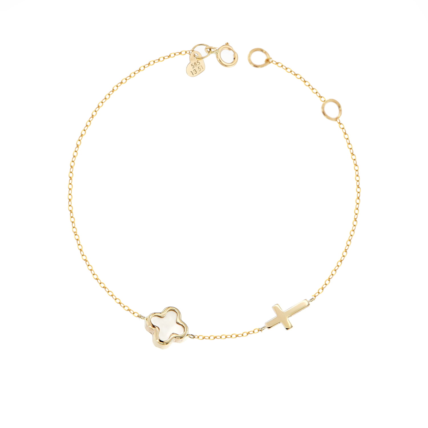 Γυναικείο βραχιόλι από χρυσό 14 καρατίων με Van Cleef και σταυρό στο πλάι