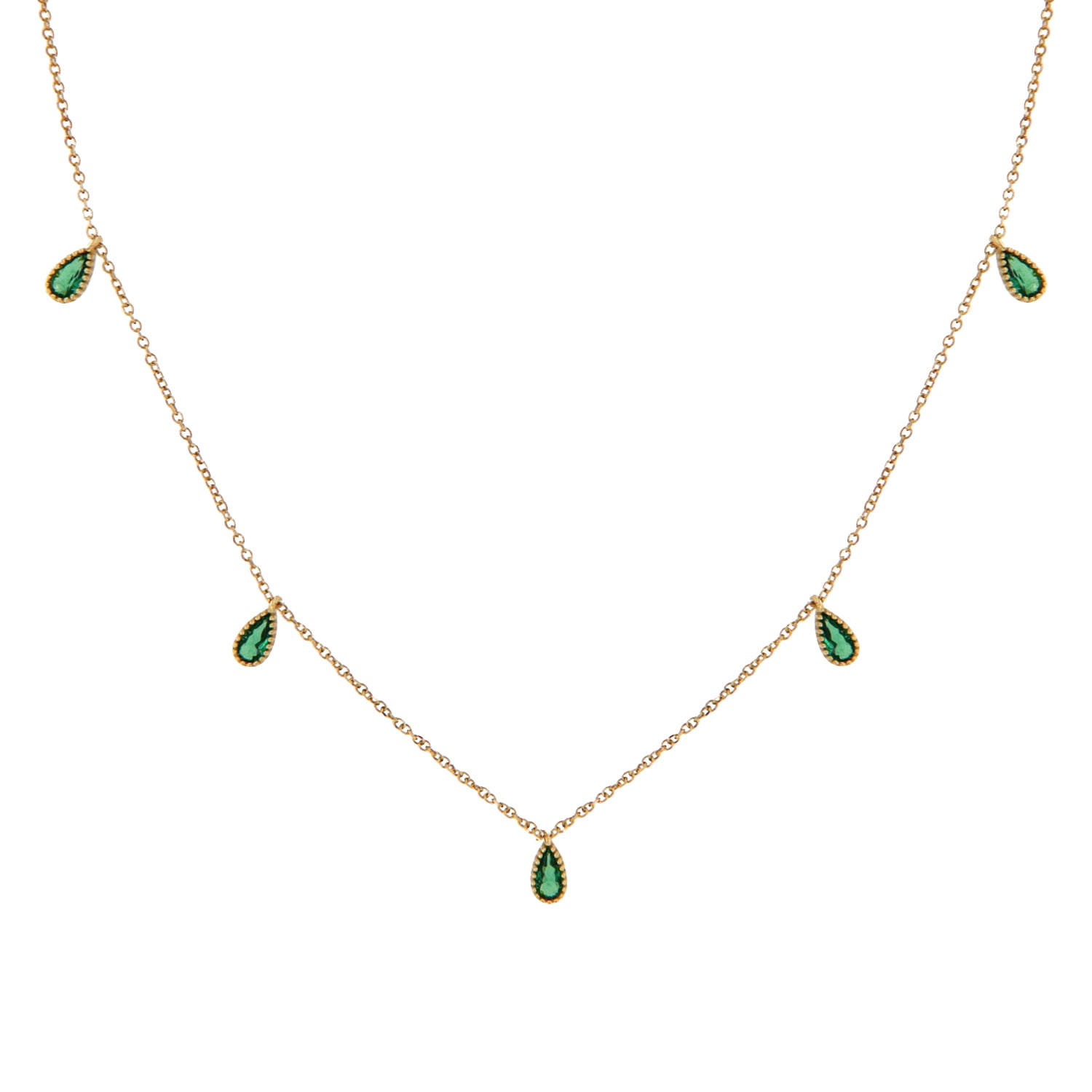 Γυναικείο κολιέ με πολλές πράσινες πέτρες ζιργκόν σε σχήμα δάκρυ. Αποτελεί ένα κόσμημα που θα σας κάνει να εντυπωσιάσετε σε κάθε σας εμφάνιση.