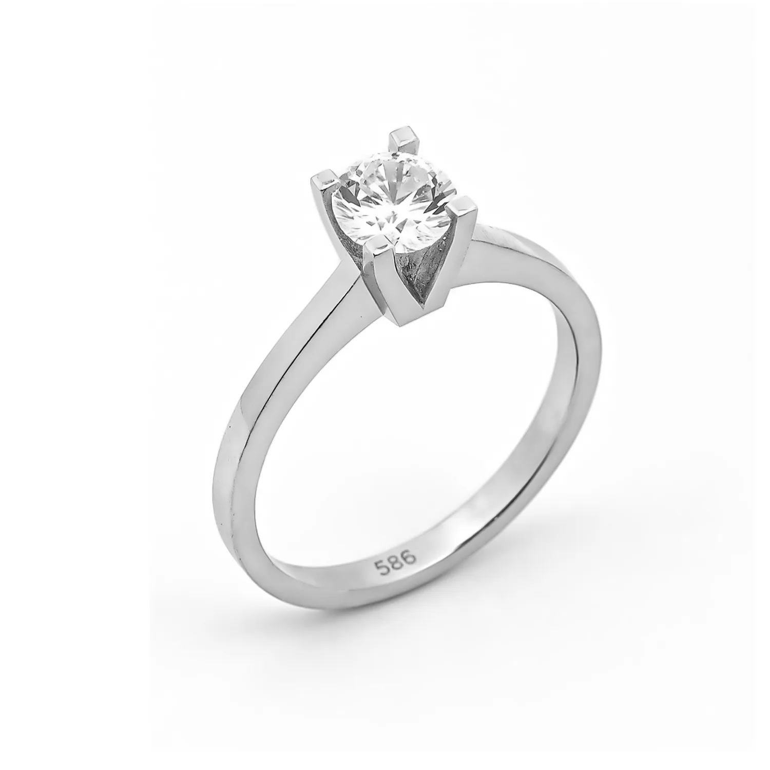 Ένα εκλεπτυσμένο μονόπετρο δαχτυλίδι από λευκό χρυσό 14 καρατίων, διακοσμημένο με λαμπερό ζιργκόν σε διαχρονική τετράγωνη στεφάνη. Ιδανικό για πρόταση γάμου ή ως ένα διακριτικό αλλά κομψό δώρο, το δαχτυλίδι αυτό συνδυάζει απλότητα και φινέτσα.