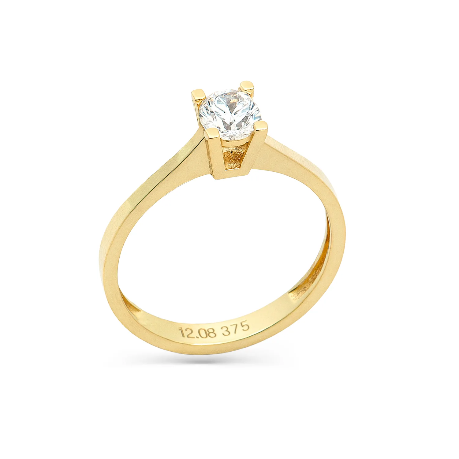Κλασικό και εκλεπτυσμένο μονόπετρο δαχτυλίδι από χρυσό 9 καρατίων, με λαμπερή λευκή πέτρα δεμένη σε μοντέρνα τετράγωνη βάση με τέσσερις γωνιακές γρίπες. Η λιτή του γραμμή το καθιστά ιδανικό για καθημερινή χρήση αλλά και για μοναδικές στιγμές όπως μια πρόταση γάμου.