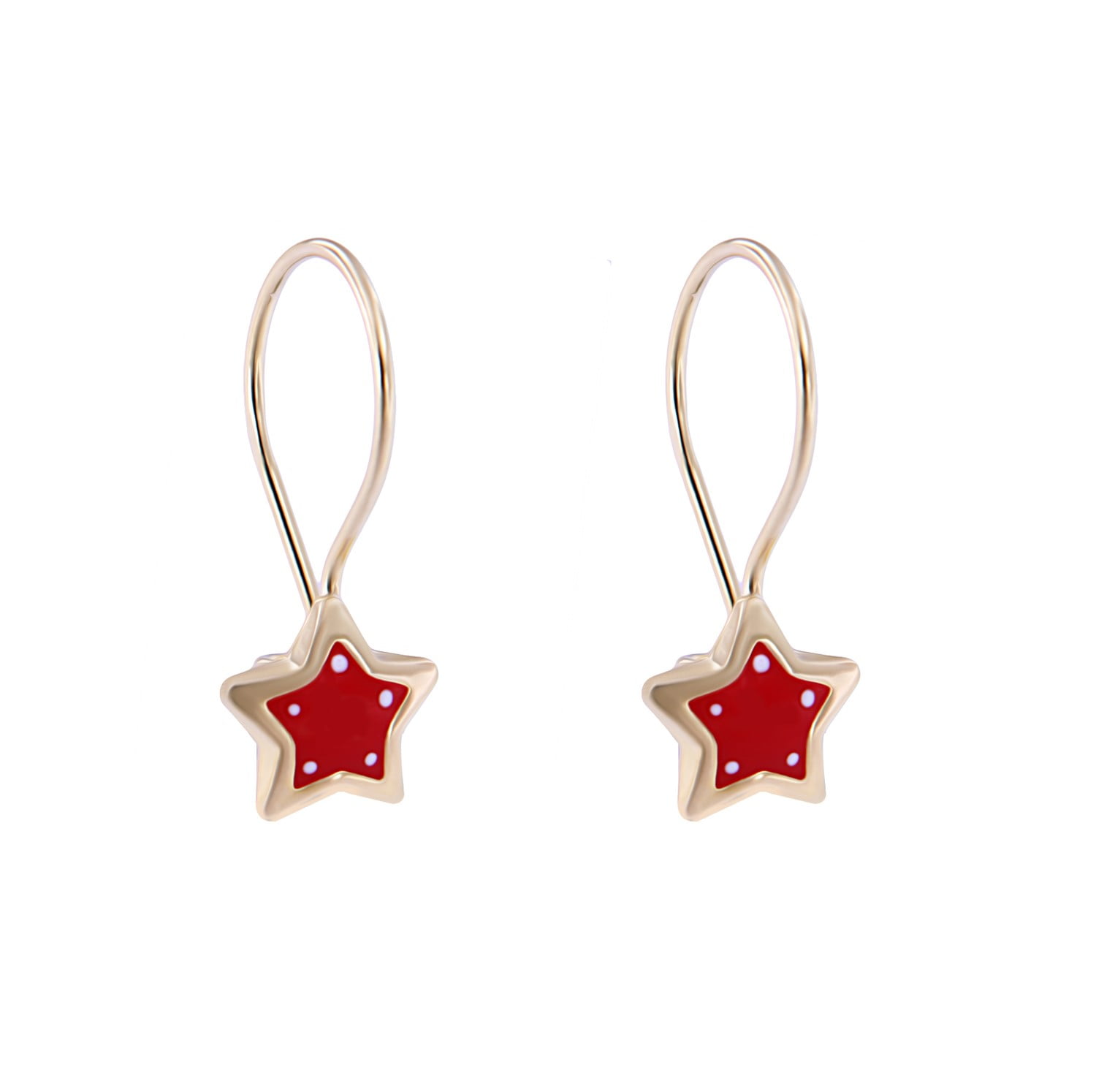 Παιδικά σκουλαρίκια κρεμαστά αστεράκι από χρυσό 14 καρατίων με κόκκινο σμάλτο