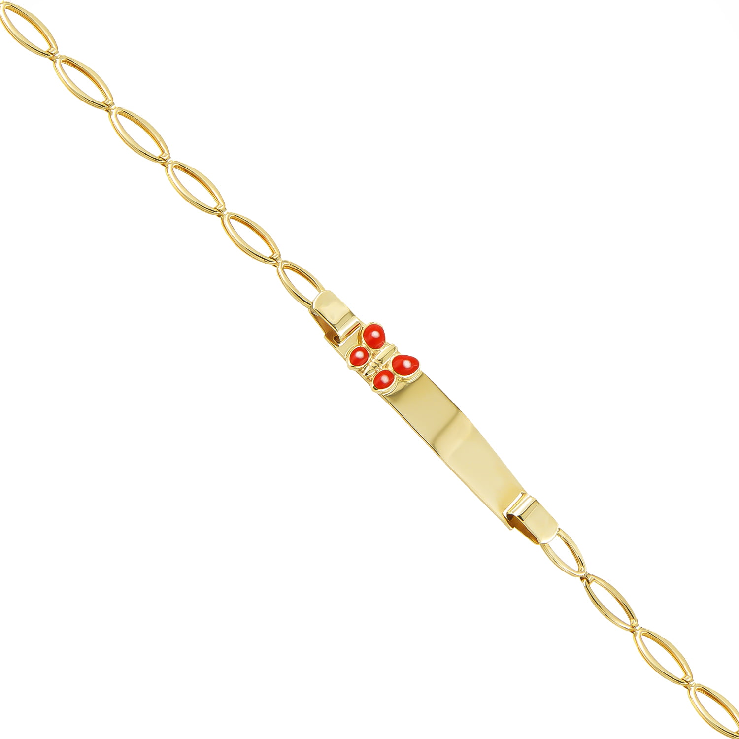 Παιδική ταυτότητα από χρυσό 9 καρατίων διακοσμημένη με πεταλούδα από κόκκινο και λευκό σμάλτο