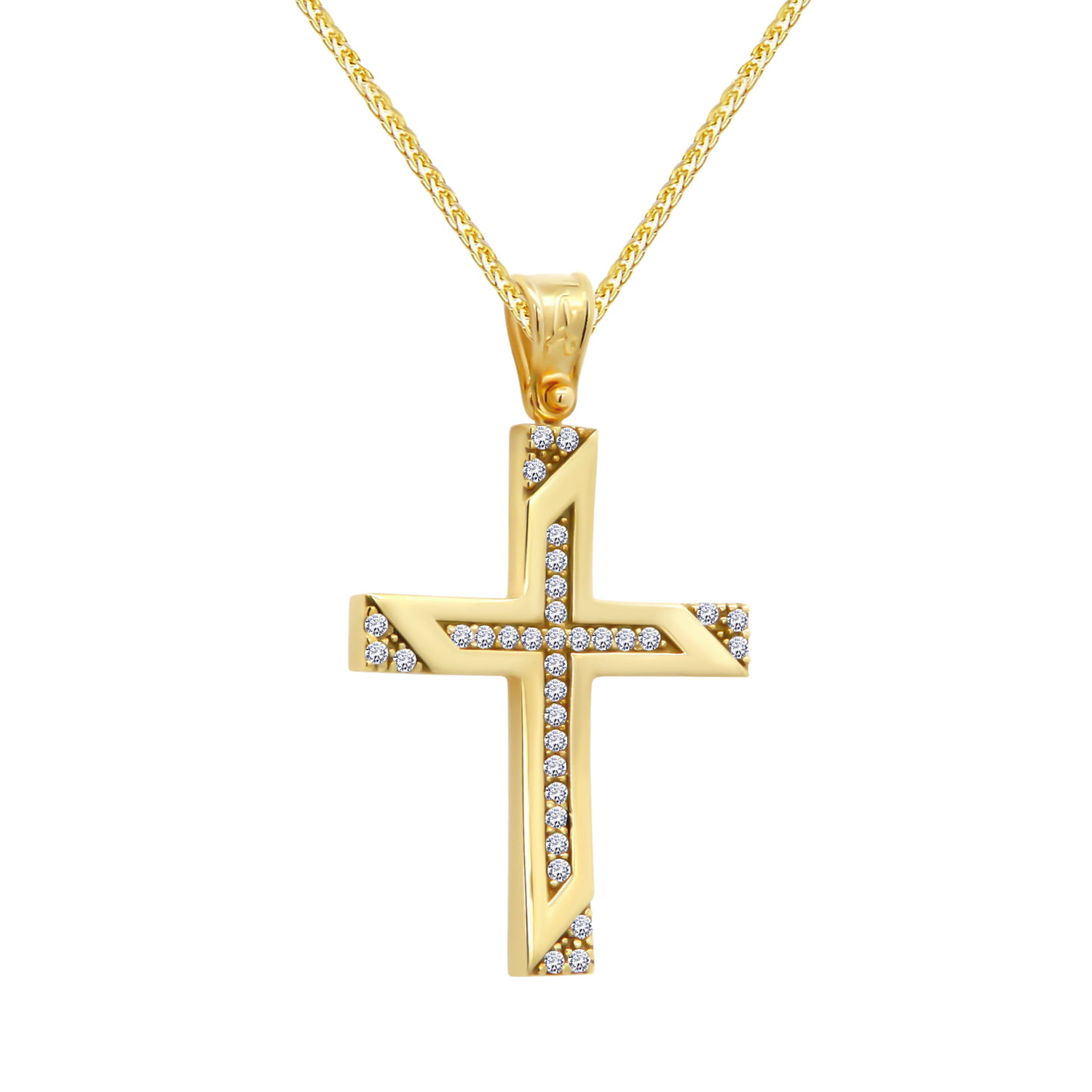 Πρωτότυπος χρυσός γυναικείος σταυρός με ζιργκόν