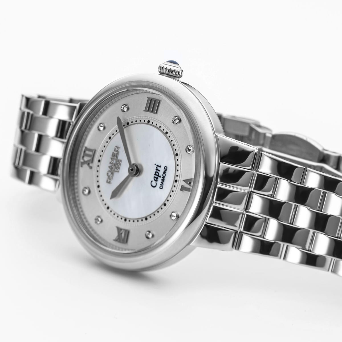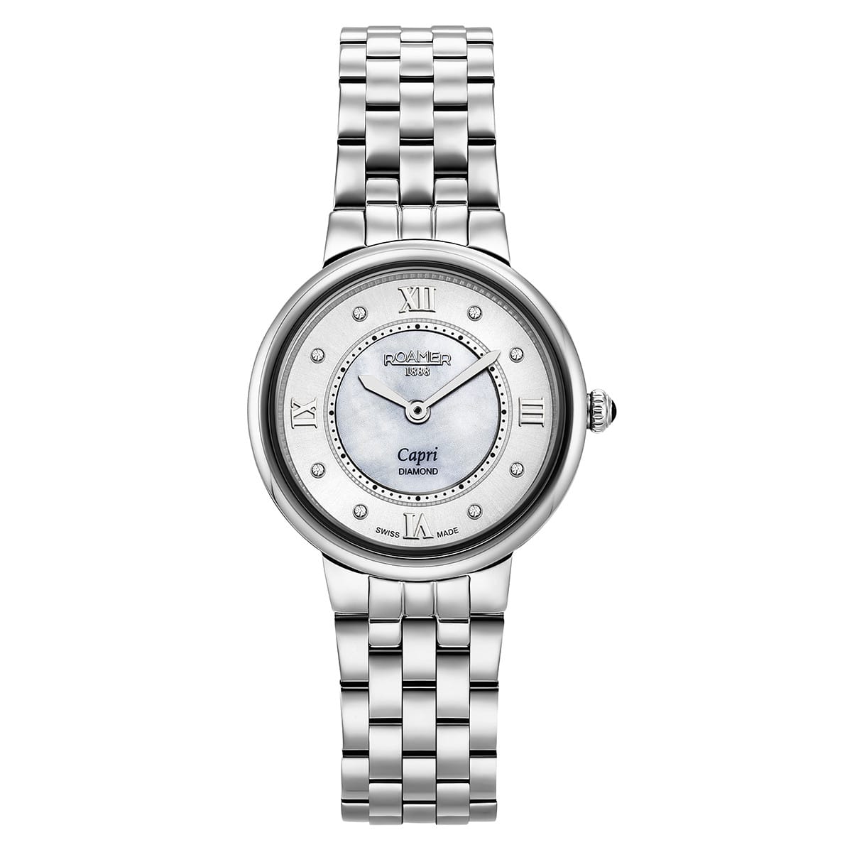 Ένα κομψό ρολόι από τον οίκο ROAMER της σειράς Capri Diamond σε κλασσική γραμμή με την υπέροχη σχεδιαστική γραμμή του γνωστού ελβετικού οίκου. Για εμφανίσεις με στυλ για όλες τις ώρες της ημέρας.