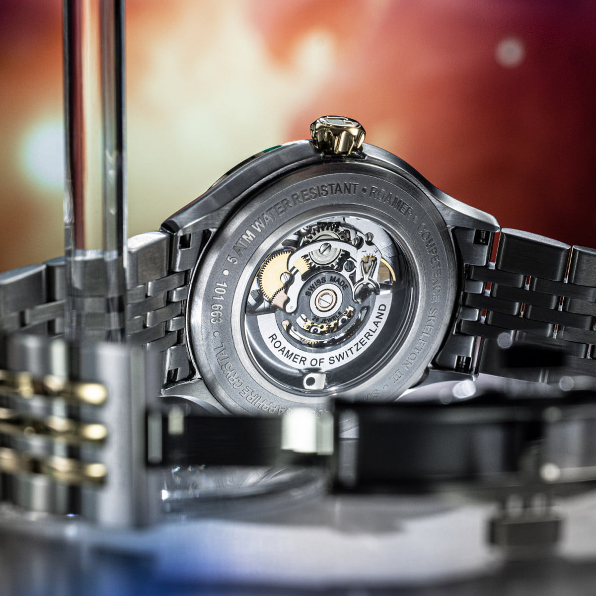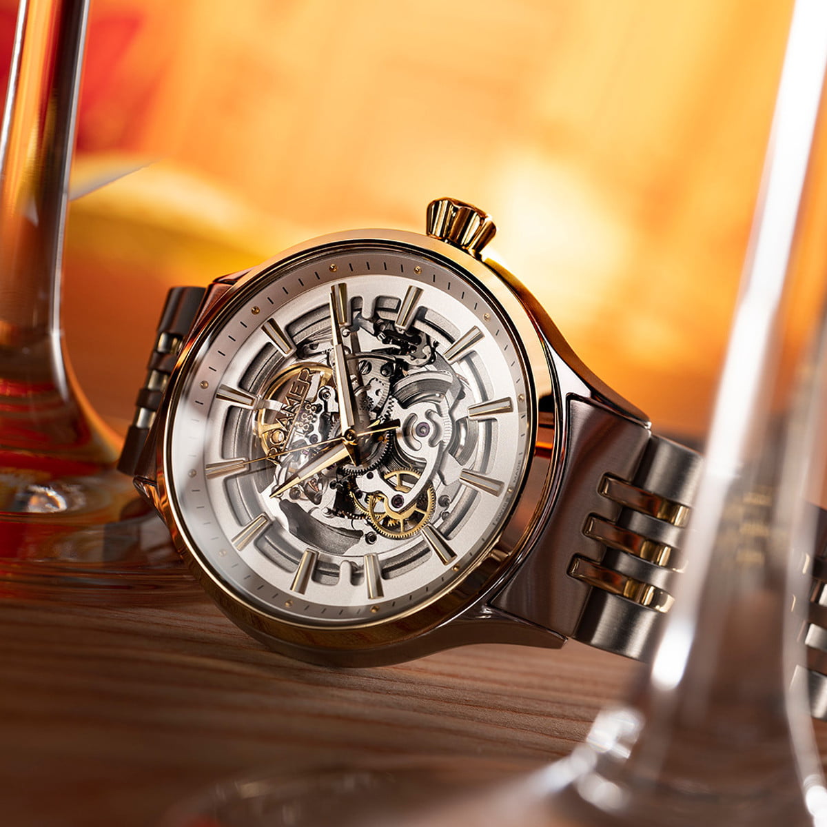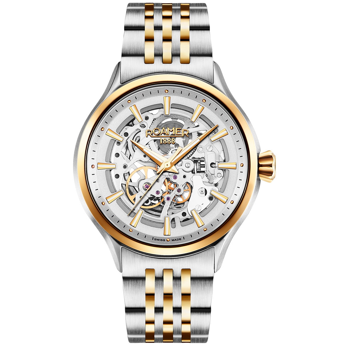 Ένα εξαιρετικό αυτόματο ρολόι που ακολουθεί την υπέροχη σχεδιαστική γραμμή του γνωστού ελβετικού οίκου ROAMER, με δίχρωμο Skeleton καντράν δίχρωμο ατσάλινο μπρασελέ κατασκευασμένο με υλικά κορυφαίας ποιότητας