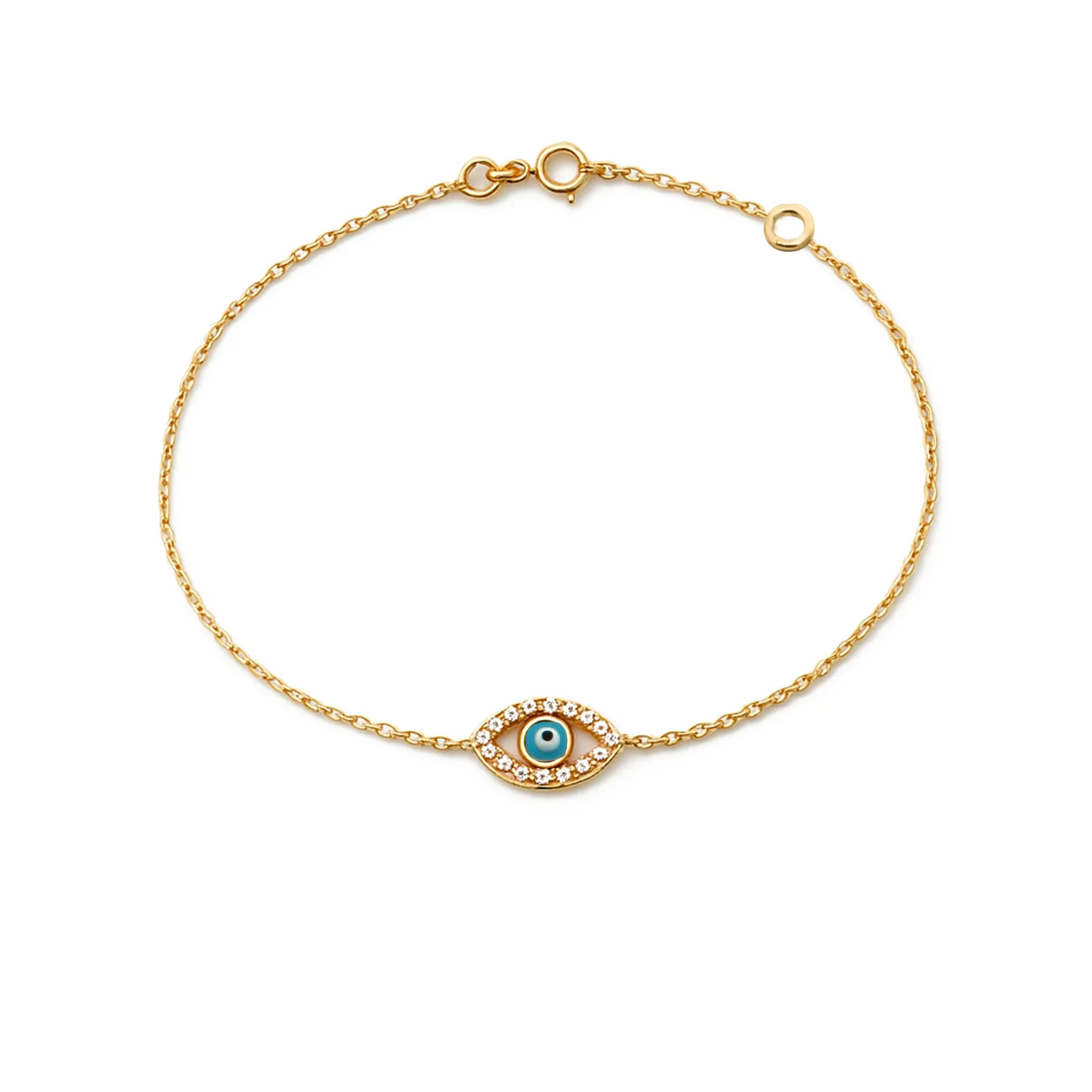 Χρυσό βραχιόλι με ματάκι και λευκά ζιργκόν