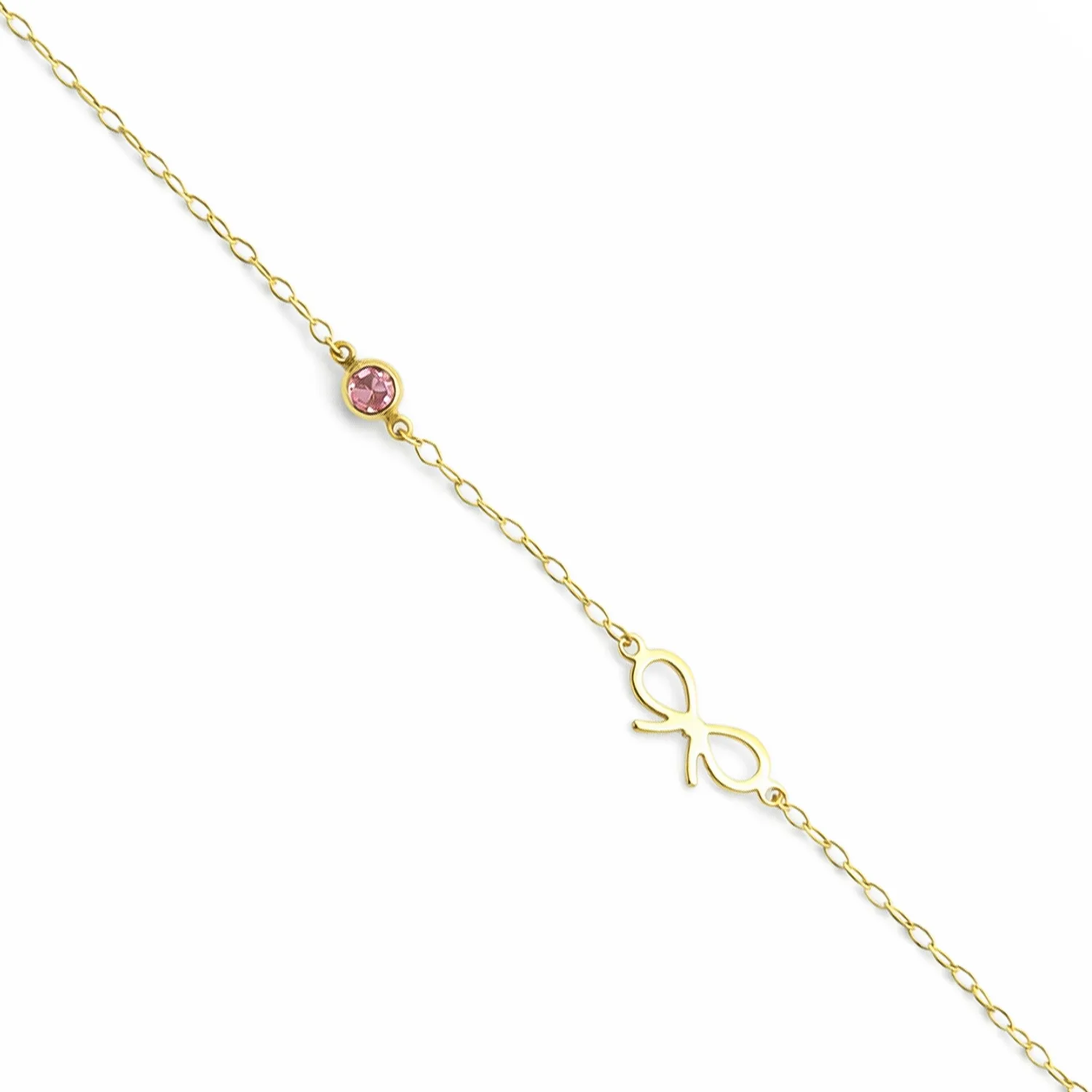 Χρυσό Βραχιόλι με Φιογκάκι και Ροζ Πέτρα